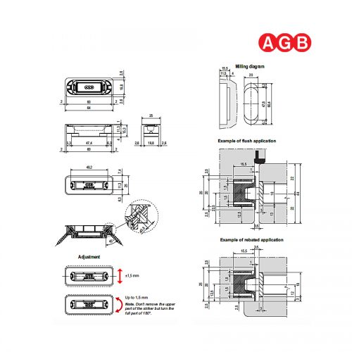 Product InfoAGB adjustable strike for mortise magnetic locks. AGB - Alban Giacomo Spa is an Italian company specialized in hardware systems for doors, windows and shutters